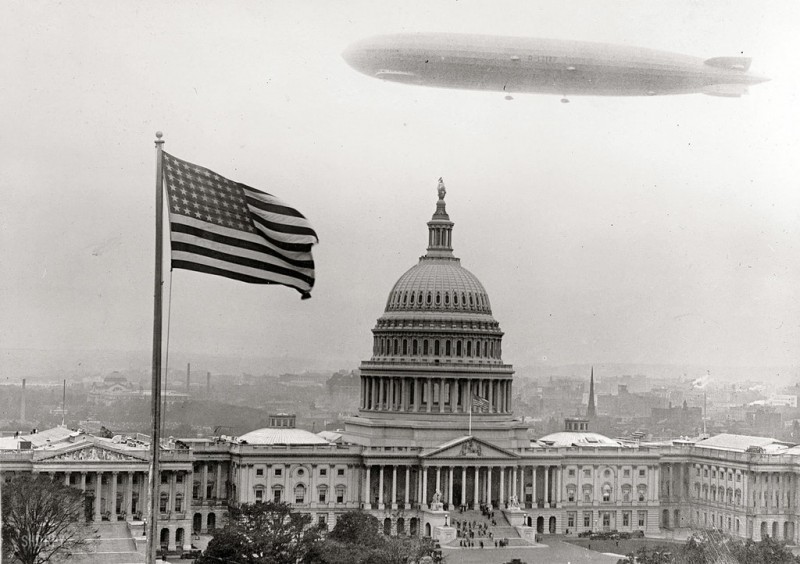 Дирижабль "Graf Zeppelin" над Капитолием. США, октябрь 1931 года.