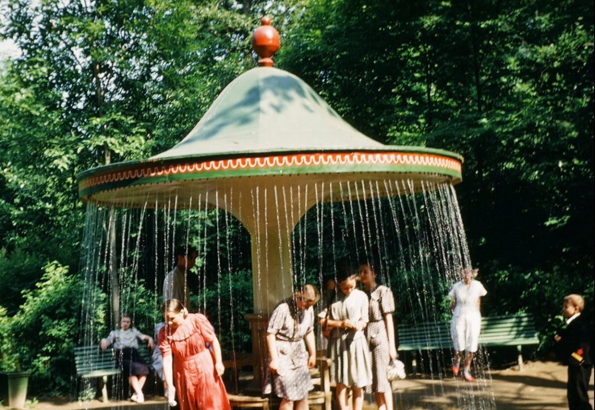 Фонтан-шутиха "Грибок" (он же "Зонтик") в Петродворце, 1954 г.