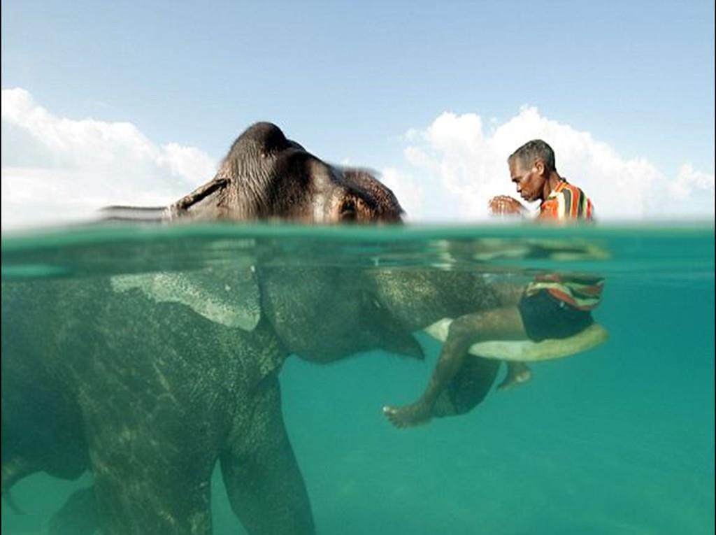 Старый 60-летний слон Раджан играет со своим хозяином на одном из маленьких островов в Бенгальском заливе.