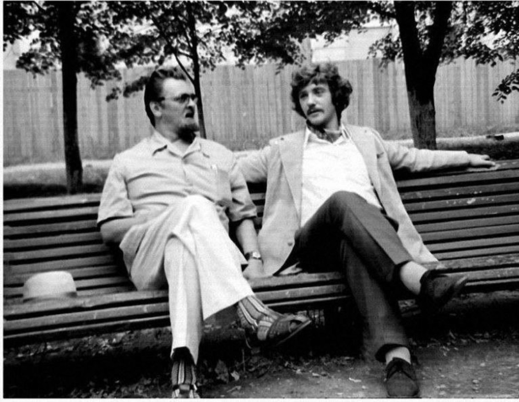 Управдом Бунша (Ю. Яковлев) и Жорж Милославский (Л. Куравлев) в перерыве между съемками, Москва, 1973 год.