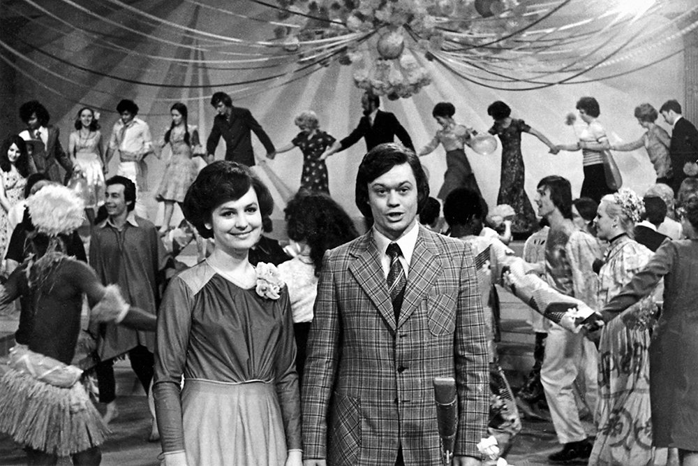 Татьяна Грушина и Николай Караченцов ведут «Голубой огонек», 1970 год.