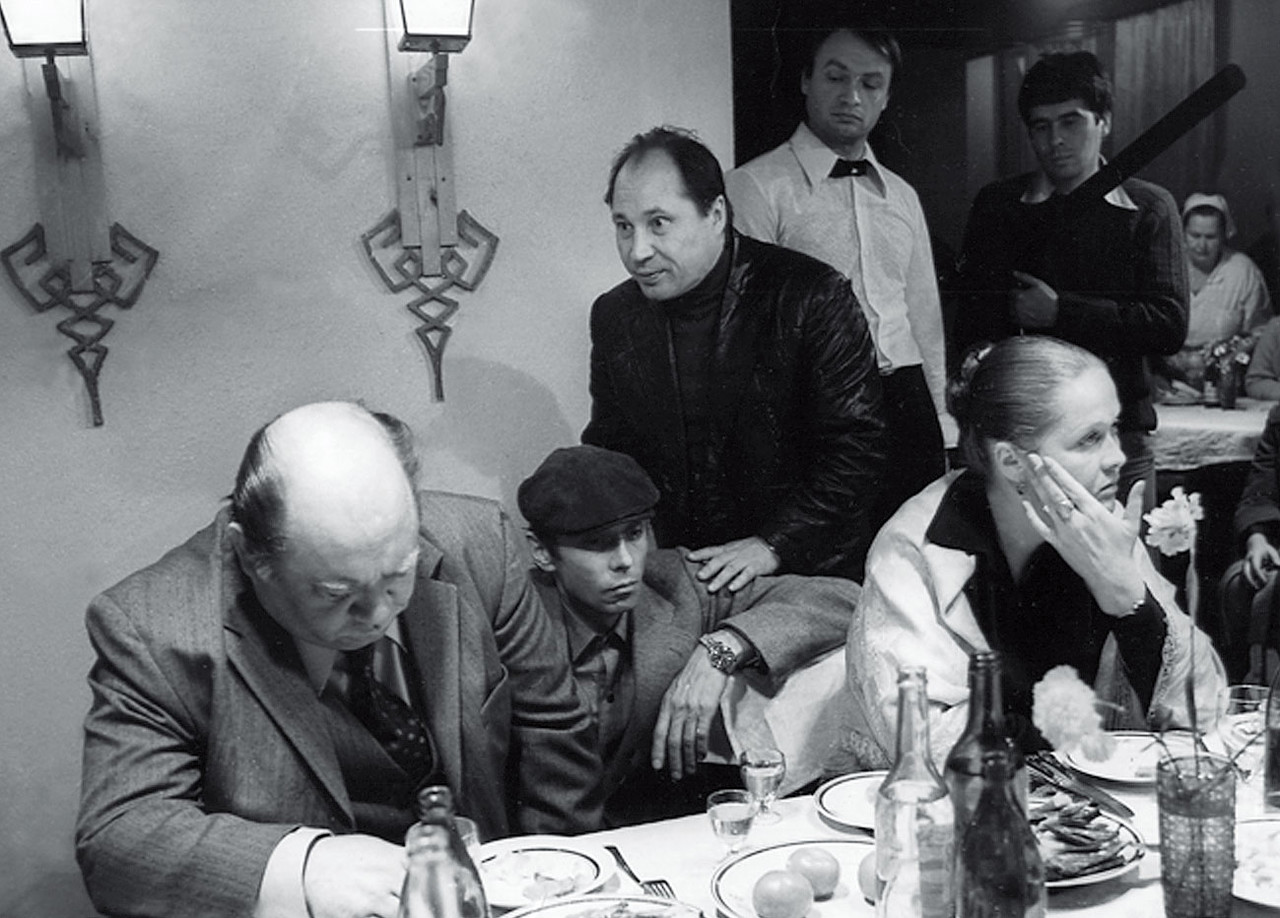 Евгений Леонов, Олег Даль, Геннадий Богачев и Наталья Гундарева на съемочной площадке фильма "Отпуск в сентябре", Петрозаводск, 1979 год.