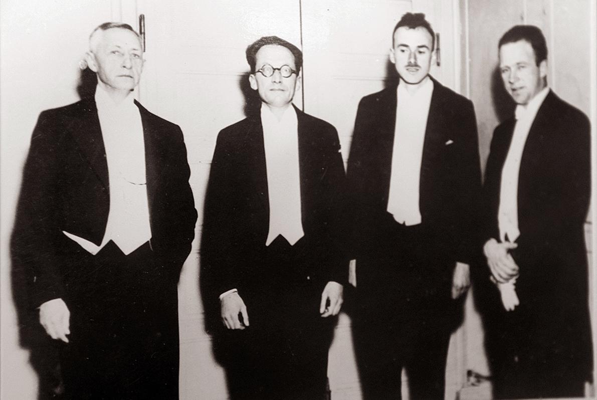 Иван Бунин, Эрвин Шрёдингер, Поль Дирак и Вернер Гейзенберг на вручении Нобелевской премии 1933 года.