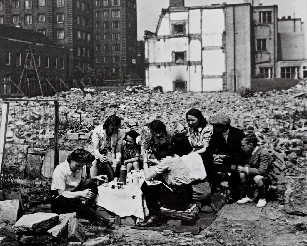 Пикник жителей Лондона на месте разрушенного бомбардировкой здания. Снимок сделан в районе Лондона Челси. Место съемки: Лондон, Великобритания. Время съемки: июнь 1942 г.. Челси (англ. Chelsea) — исторический район Лондона, ранее — его пригород. Входит в состав административного округа Кенсингтон и Челси. Челси считается одним из самых дорогих районов Лондона. В 2011 году в Челси было продано почти 12 % всех лондонских домов стоимостью выше 1 млн., более 13 % всех домов стоимостью выше 5 млн. и порядка 11 % всех домов стоимостью выше 10 млн..