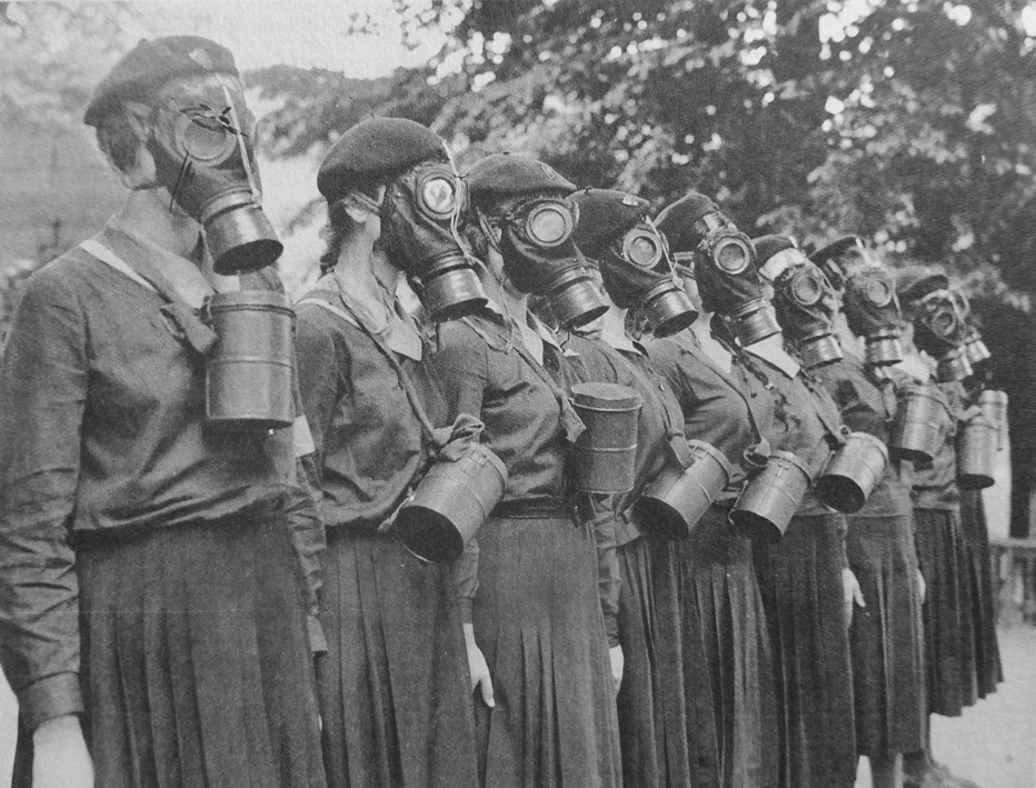 Польки, вступившие в организацию «Военная подготовка женщин» (Przysposobienie Wojskowe Kobiet — PWK), на занятии с противогазами. Место съемки: Польша. Время съемки: август 1939 г.. Przysposobienie Wojskowe Kobiet (дословный перевод «Подготовка военных женщин» или ПВК) – военизированная женская организация была создана в 1923 году по инициативе бывших членов организации «Связи Стрелковой и Польской Военной Организации». Была создана вместо, распущенного в том же году «Добровольного Легиона Женщин». Перед началом Второй Мировой войны PWK имело в своих рядах более 47 тысяч. членов. Много членов ПВК в рядах Войска Польского принимали активное участие во Второй Мировой войне. Участвовали они в сентябрьской кампании 1939 г., а во время оккупации работали в польском движении сопротивления.