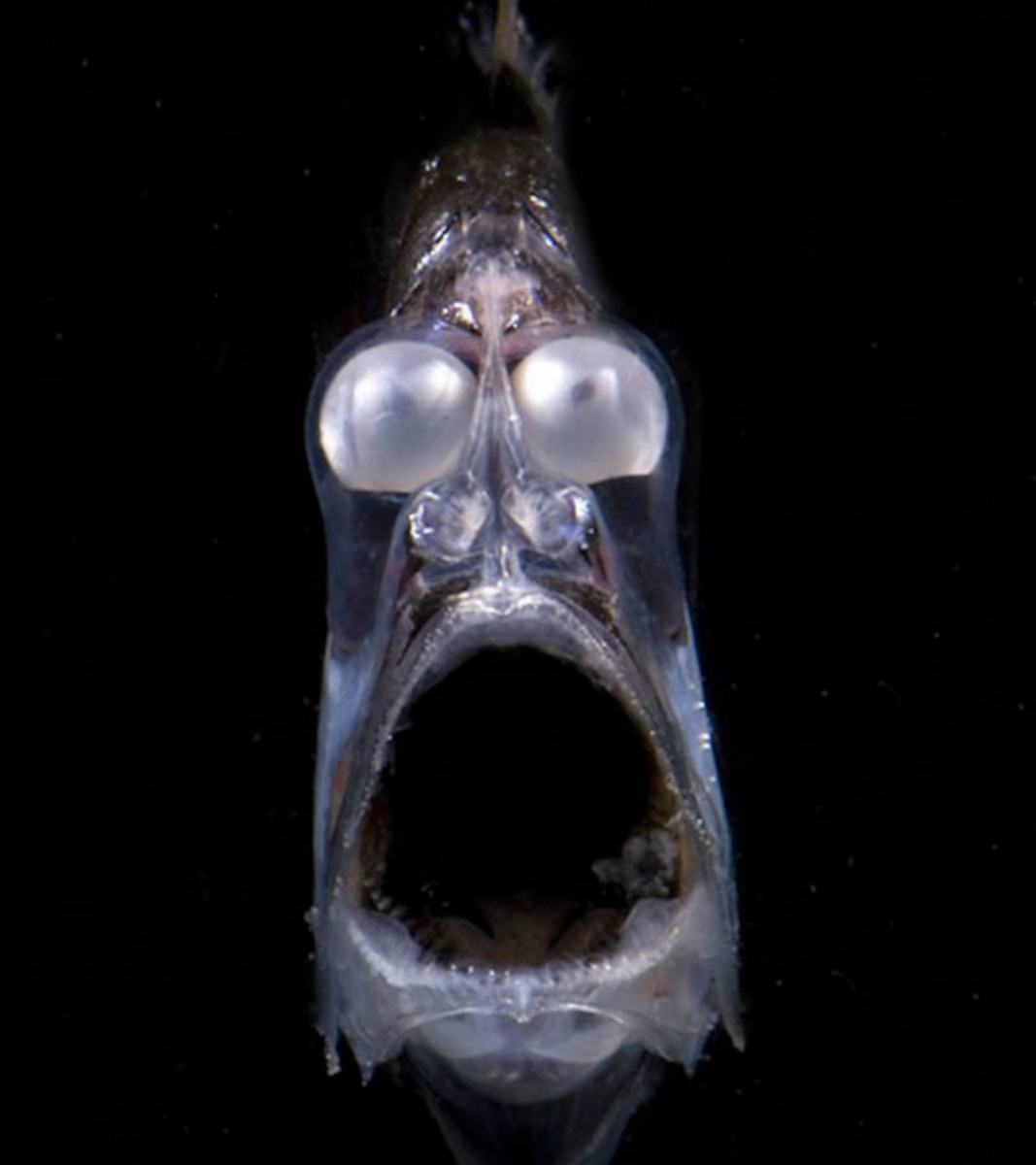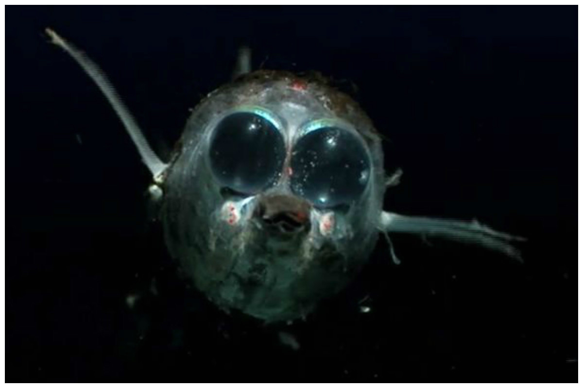Следует отметить, что глубоководные рыбы чрезвычайно прожорливы. Связано это не с жадностью, а с ограниченными ресурсами. Чёрный живоглот или, как его называет научное сообщество, хиазмодон — чемпион по прожорливости. Внешне рыба выглядит невзрачно. Длина его достигает всего лишь 20 сантиметров. У живоглота нет больших плавников, развитой мускулатуры и даже чешуи. Зато кости рыбы крайне эластичны. Также сильно растягиваются пасть и желудок живоглота. Благодаря этому маленькое существо поглощает добычу в несколько раз больше себя. И жертва зачастую ещё пытается выбраться. Почти все обитатели Марианской впадины — хищники. Из-за отсутствия света флора в желобе очень скудная. Всё, что остаётся подводным монстрам, — пожирать друг друга. Это объясняет, почему марианская фауна такая зубастая. Вдобавок каждая рыба имеет уникальный механизм добычи пищи. Например, рыба-гадюка умеет раскрывать пасть более чем на 100 градусов. Для этого нижняя челюсть с длинный зубами выдвигается вперёд. Гадюка цепляет жертву и буквально запихивает в пасть. Кроме того, на дне впадины живут менее зубастые, но не менее удивительные создания. Внешний вид рыбы под названием макропинна, мягко говоря, специфичен. Лоб существа прозрачен. Под слоем прозрачных тканей спрятаны глаза, которые свободно вращаются в своих ложах. Пространство вокруг глаз заполнено прозрачной жидкостью. Благодаря такому необычному строению макропинна отлично видит почти в полной темноте. Более того, рыба замечает добычу, даже когда она резко меняет направление: угол обзора у глаз впечатляющий.