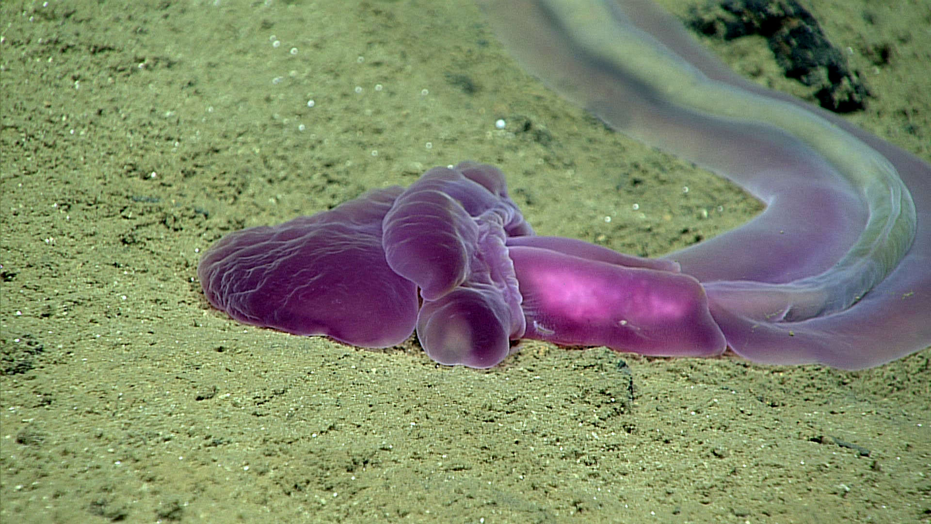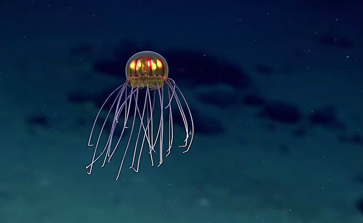Всё, что пока есть — это поцарапанный «Ёж», выброшенные прибоем зубы и жуткие звуки. Однако исследователи убеждены, что на дне впадины живёт Carcharodon megalodon — акула, которая была хозяином океана два миллиона лет назад. И если версия с доисторической акулой ещё выдерживает критику, то другие легенды Марианской впадины кажутся невероятными. Так, учёные, которые запустили в 2012 году аппарат «Титан», уверены, что столкнулись с пришельцами. Устройство спускалось для того, чтобы сделать фотографии и снять на видео подводный мир. Однако в какой-то момент камеры зафиксировали странные объекты. «Титан» будто «обступило» сразу несколько металлических цилиндров. Они неподвижно зависли в воде. Аппарат подплыл поближе, и исследователи увидели, что цилиндры чем-то напоминают летающие тарелки. «Титан» так и не всплыл, вместе с ним океан поглотил и все записи. Несмотря на это, учёные убеждены, что Марианская впадина заселена разумными существами. Безусловно, дно желоба обитаемо. Но живут там привычные для Земли организмы. Хотя некоторые — настоящее чудо природы!