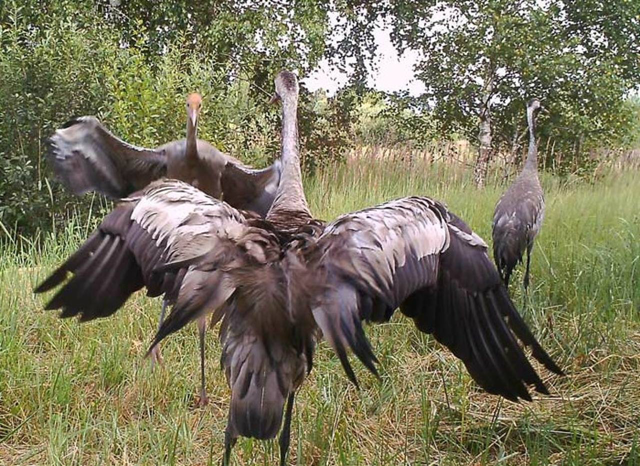 Журавли устроили брачные танцы перед камерой
