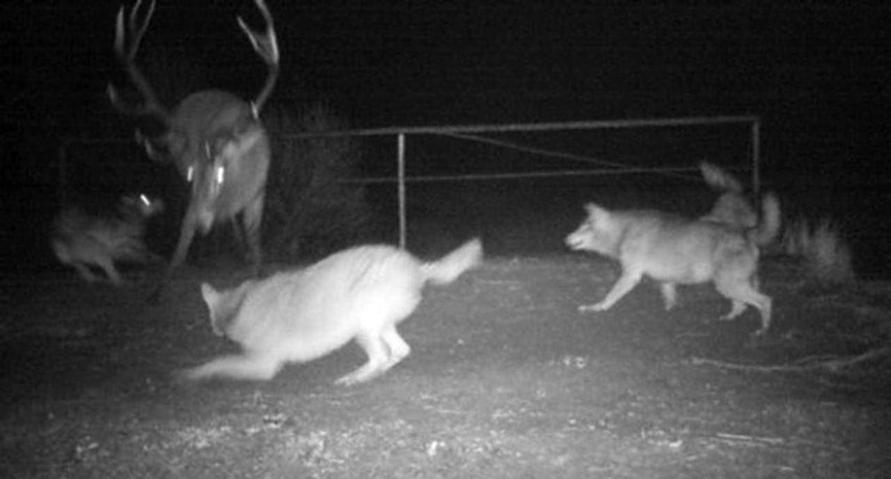 Оленя-подранка загоняют волки