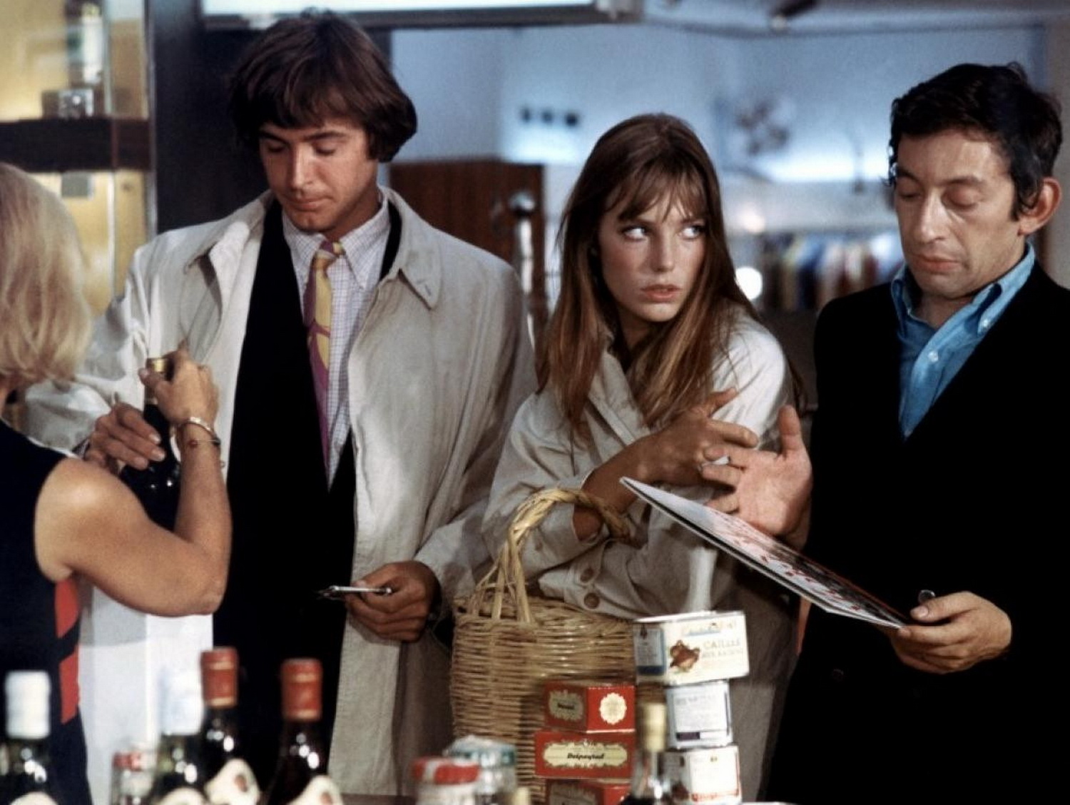Чтобы как-то наладить отношения с Сержем на съёмочной площадке, Джейн предложила режиссёру сходить им всем троим на ужин, но Грембла хитро и дальновидно решил оставить парочку наедине. Джейн до сих пор любит вспоминать, что весь снобизм и эпатаж Сержа в её глазах улетучился, а лёд тронулся, когда она пригласила его на танец, и «Мистер Казанова» так отдавил ей ноги, так неуклюже двигался, что она поняла, что за маской надменного ловеласа скрывается робкий и даже милый мужчина. В тот вечер Серж показал ей свой Париж: он возил её из одного ресторана в другой, и всюду его знали и радостно встречали, и владельцы, и постоянные посетители. В русском «Распутине» Серж попросил музыкантов выйти на улицу и в честь Джейн сыграть самый красивый и печальный вальс, а сам щедро одаривал всех музыкантов чаевыми, засовывая купюры им в футляры. В конце вечера он галантно поинтересовался, отвезти её домой или... и она выбрала «чашечку кофе» в отеле, куда он водил своих подружек. Её смутило, когда портье спросил у ее спутника: «Вам как обычно, мсье Генсбур? Тот же номер?» Поднявшись наверх, она побежала в ванную, всё ещё сомневаясь — девочка из хорошей английской семьи боролась в ней со спонтанной и страстной женщиной. Однако, войдя к Сержу в спальню, она застала знаменитого любовника мирно посапывающим, тогда в соседнем магазинчике она купила диск с любовными песенками и поставила его в ноги Сержу, а сама, улыбаясь, поехала в свой отель, к дочке и няне. После той, хоть и невинной ночи, любовную историю их героев в фильме им не надо было больше играть, притворяясь.