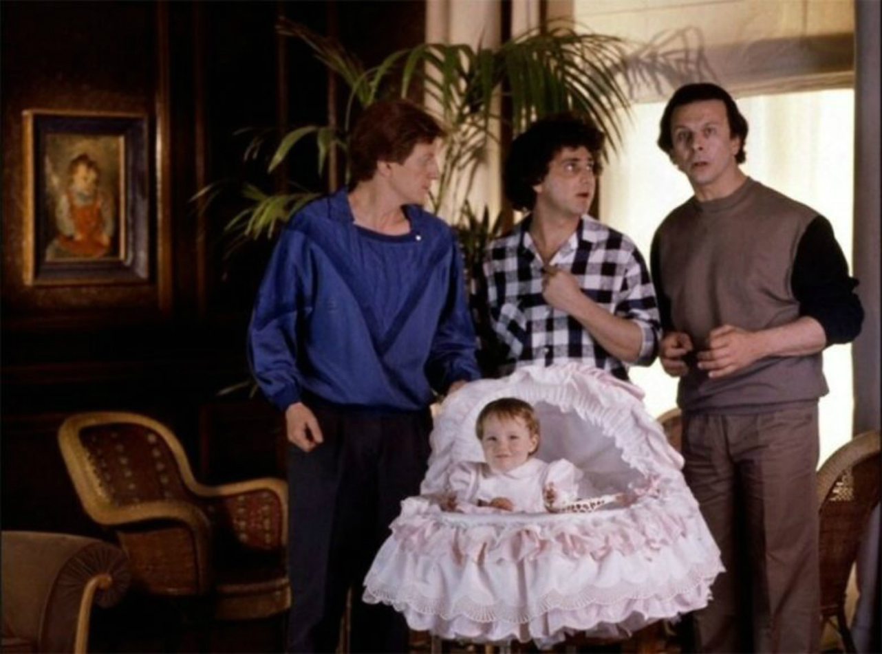 «Трое мужчин и младенец в люльке» / «3 hommes et un couffin» Комедия о трех холостяках, вдруг вынужденных взять на себя заботу о младенце. 33,5 млн. зрителей и 7 место в прокате 1987 года