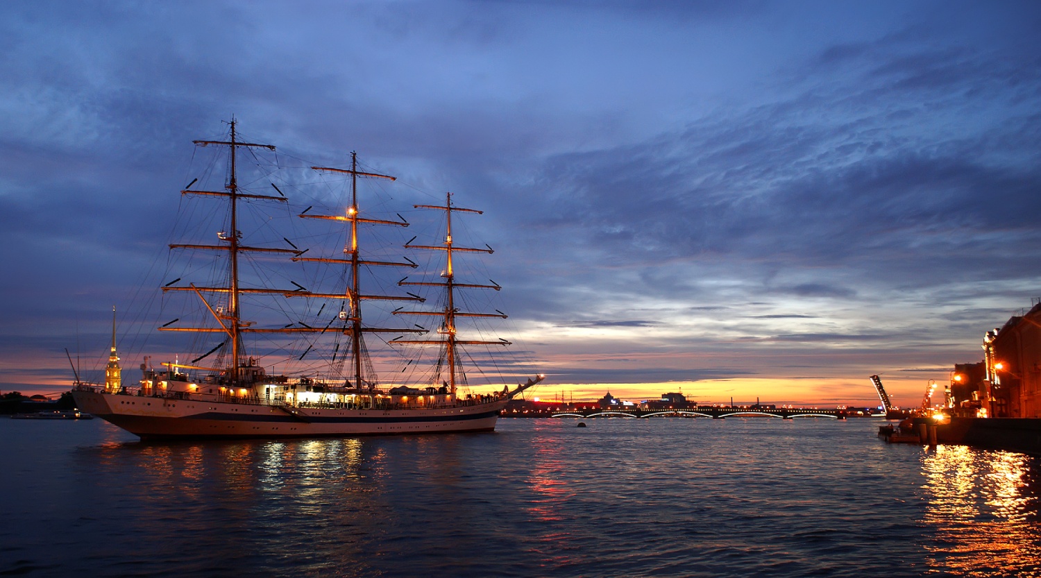 В Питере данный период приходится на период с 11 июня по 2 июля. Считается, что пик ночей выпадает на 2 июля (солнце заходит за горизонт на семь градусов). Хотя многие жители Северной столицы утверждают, что «официально» здесь период белых ночей стартует 26 мая, а заканчивается 16-17 июля соответственно. Начиная с этого времени солнце опускается за горизонт лишь на девять градусов, и светлые ночные сумерки незаметно перетекают в рассвет.