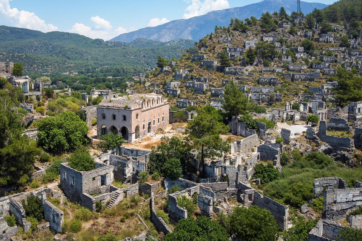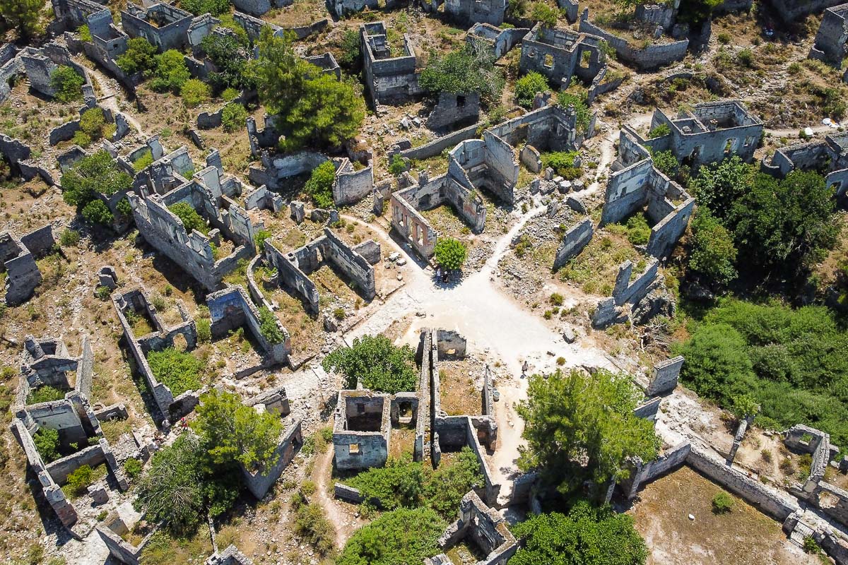 В 1950-х годах после сильнейшего землетрясения жители соседнего города Фетхие, ища материалы для ремонта, разобрали черепицу, вывезли оконные рамы и входные двери, чем поставили окончательную точку в формировании образа города-призрака.