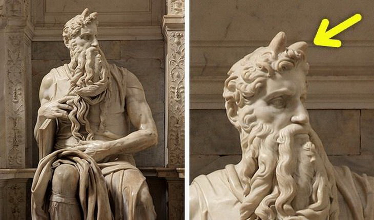 Из-за ошибки в переводе книги «Исход» библейский пророк стал рогоносцем. Еврейское слово karnayim можно перевести и как «лучи», и как «рога». Из головы Моисея исходили лучи света, а ему приделали рога [Микеланджело виноват, но он не виноват!]