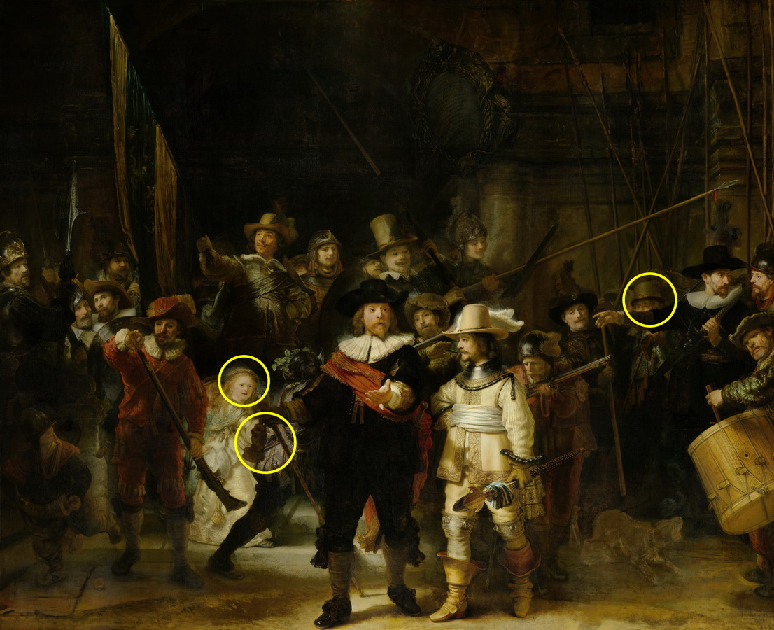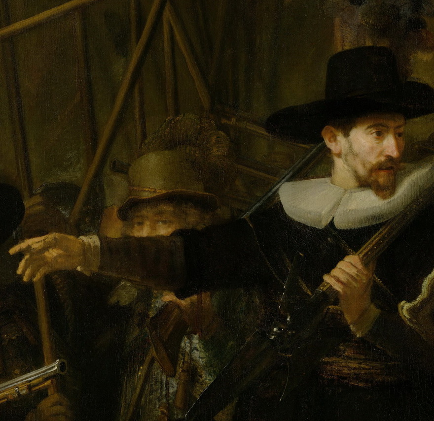 Лицо художника скрыто рукой мушкетёра (к картине "Ночной дозор")