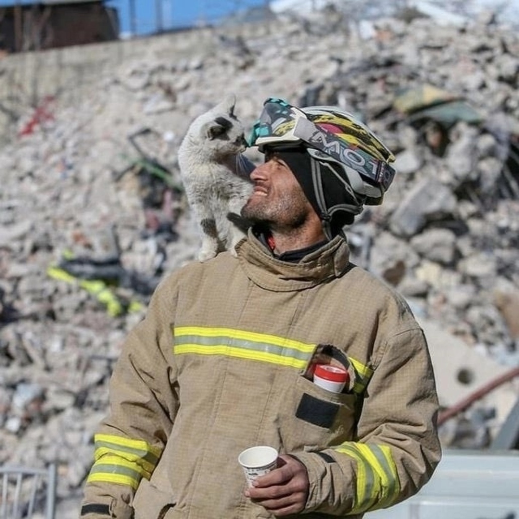 В Турции пожарный спас кота, который пробыл под завалами 129 часов. Теперь кот ни на шаг не отходит от своего спасителя. А мужчина и не против, он собирается оставить кота себе и даже придумал ему прозвище - Обломок. Нашёл себе лучшего друга.