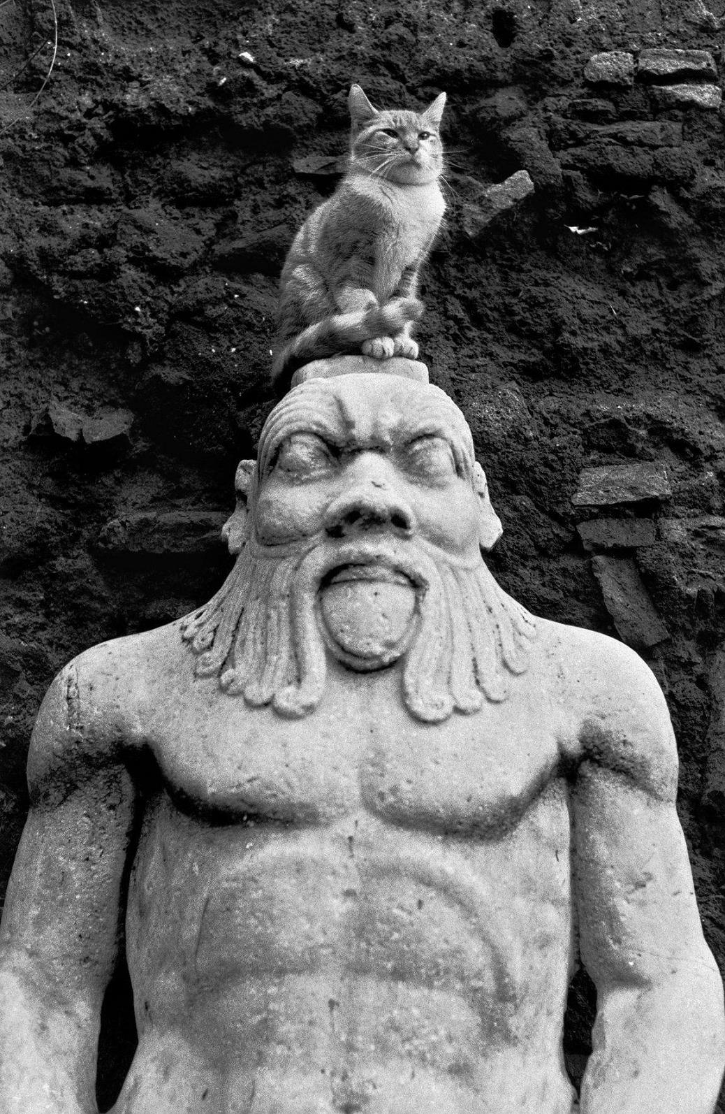 Кот гордо восседает на голове египетского бога Беса. 1959 год.