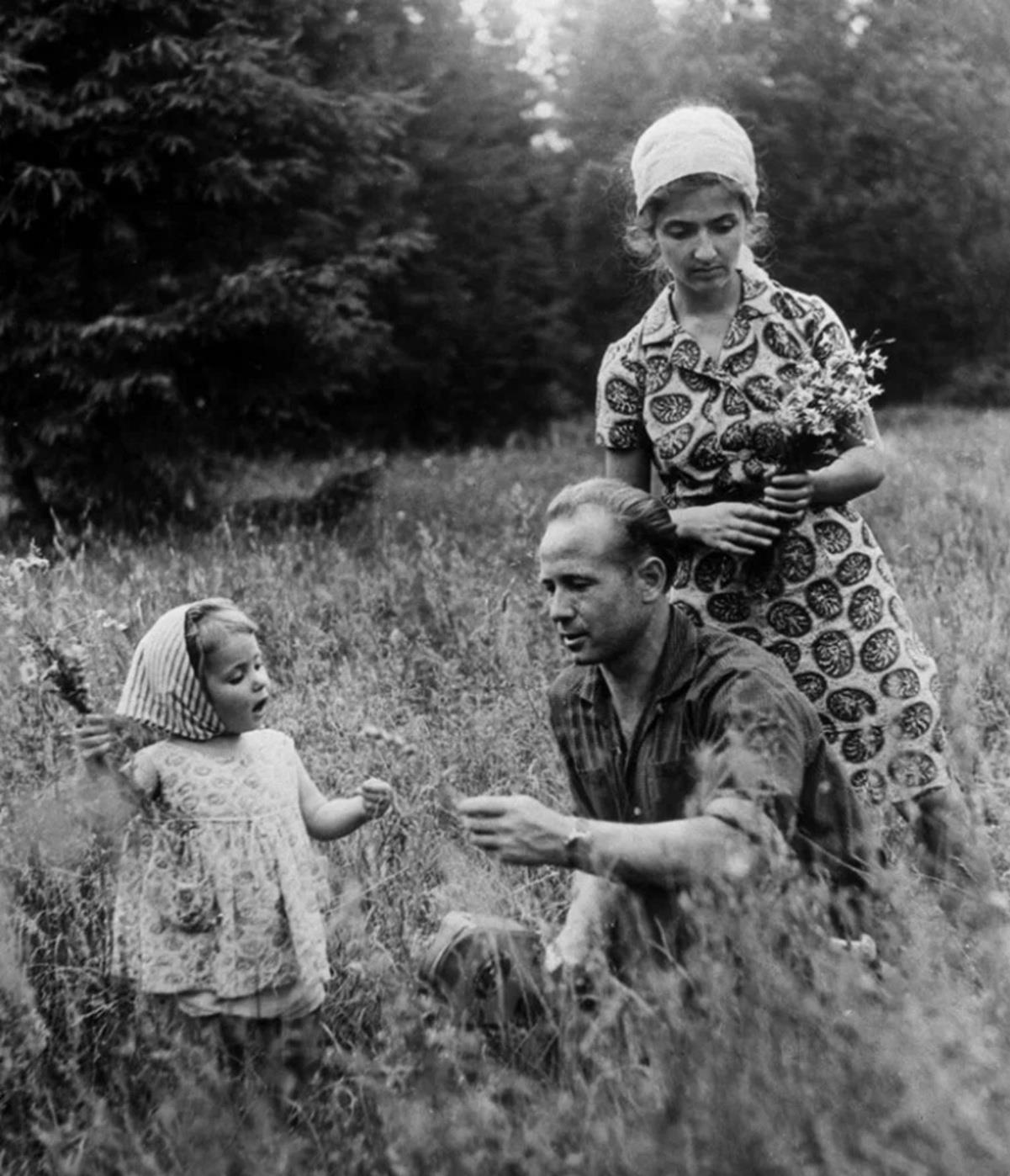 Лётчик-космонавт Леонов Алексей с женой Светланой и дочерью Викторией в Подмосковье, 1965 год.
