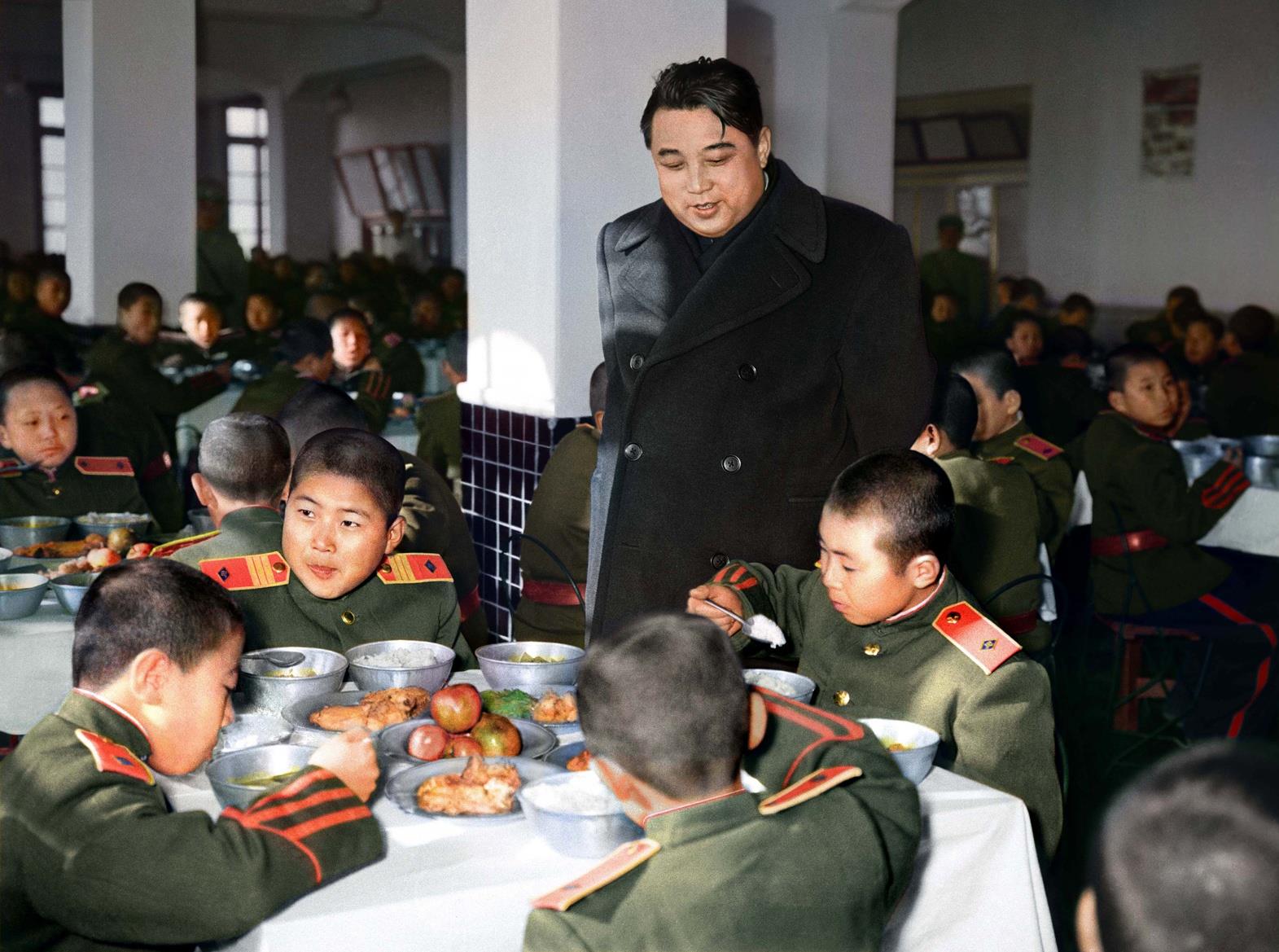 Ким Ир Сен во время посещения Революционной школы Мангёндэ, 1962 год. Элитная школа в районе Мангёндэ в Пхеньяне, Северная Корея. Основанная в 1947 году, это специальная школа, которая доступна только для членов Трудовой партии Кореи , Корейской народной армии , а также семей административных и высокопоставленных чиновников.