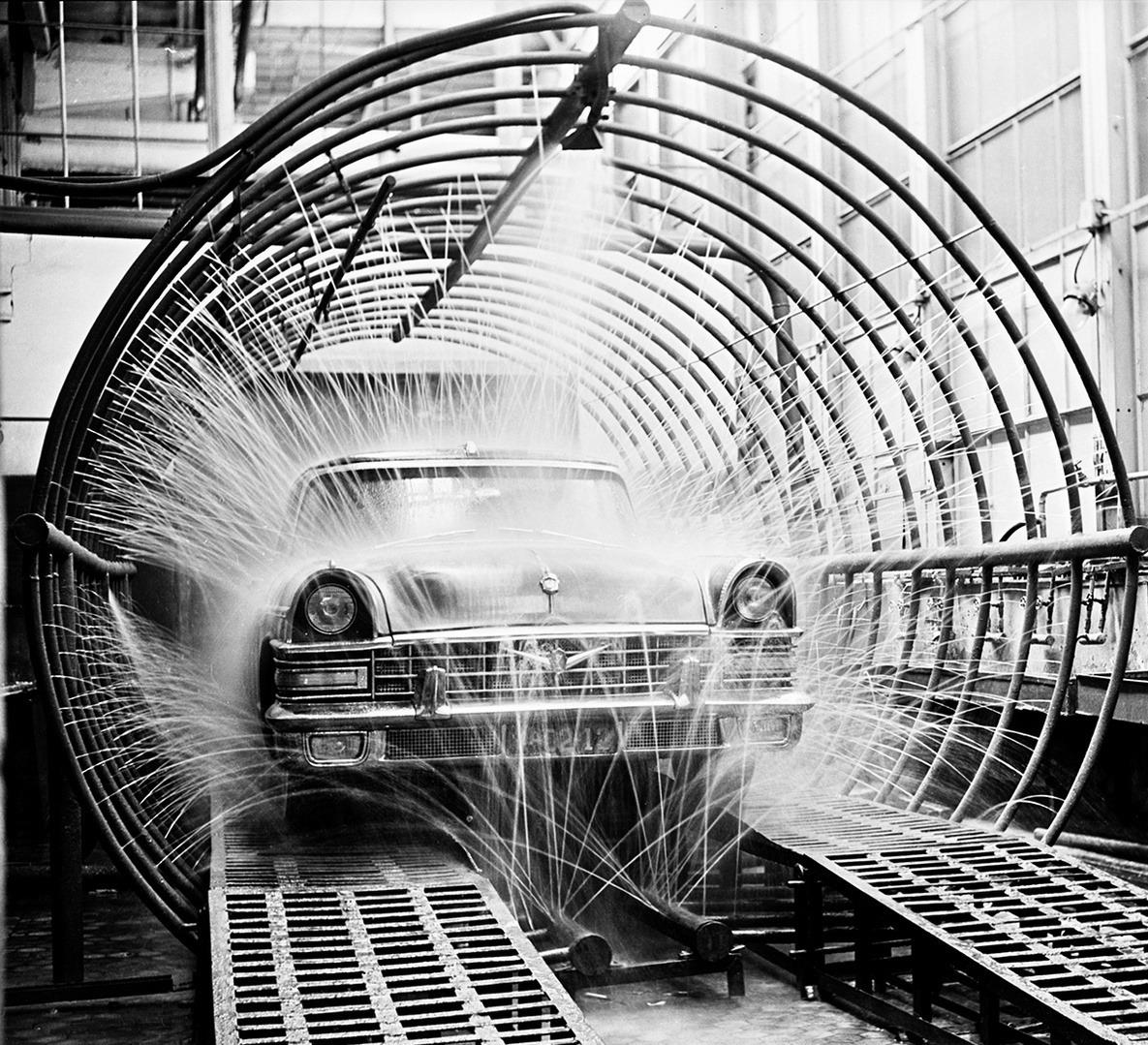 ЗИЛ-111 принимает душ перед отправкой с завода. 22 марта 1959 года.