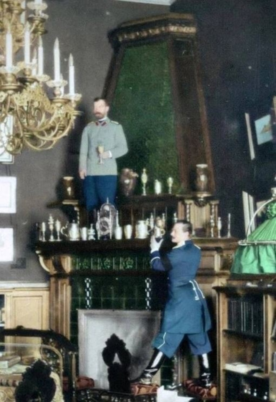 Николай II пьёт на камине в Александровском дворце в Царском Селе, 1901 год.