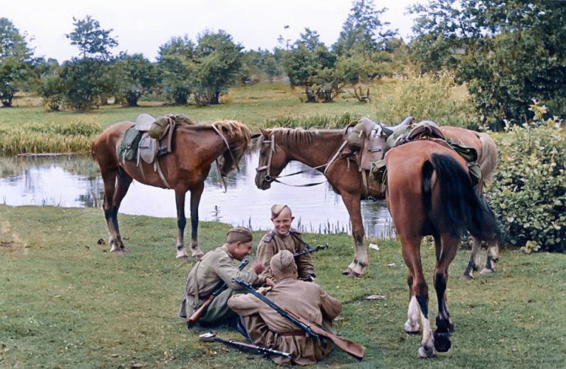1944 год. Кавалеристы на отдыхе