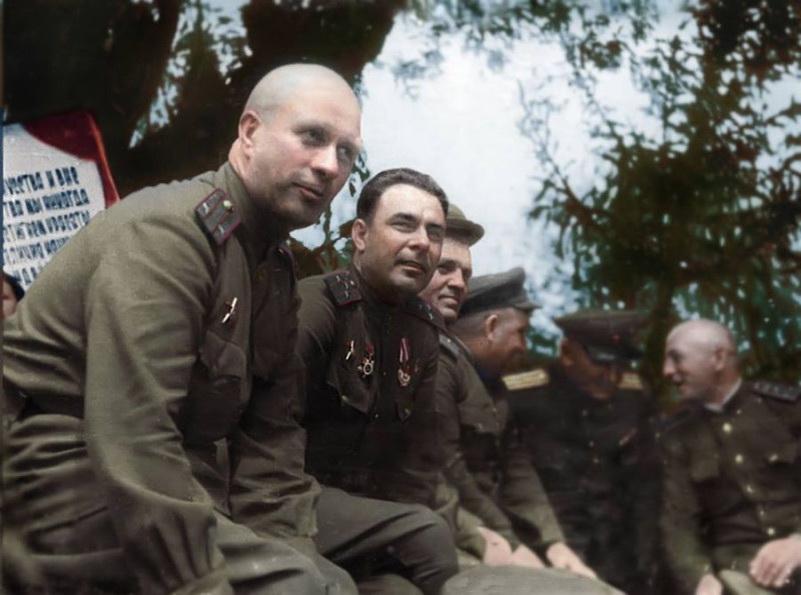 Л.И. Брежнев с сослуживцами на фронте