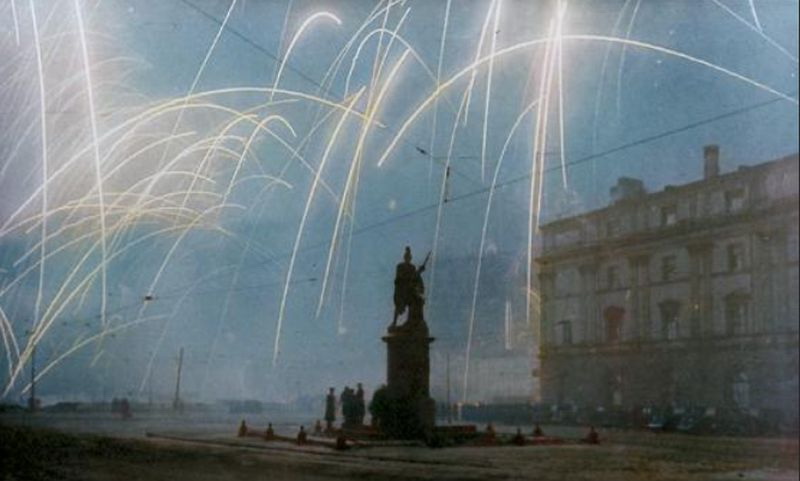1944, 27 января. Ленинград. У памятника Александру Суворову во время салюта в ознаменование полного освобождения города от блокады