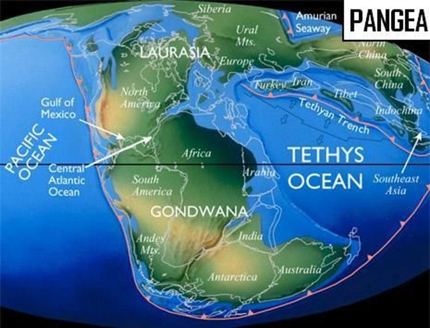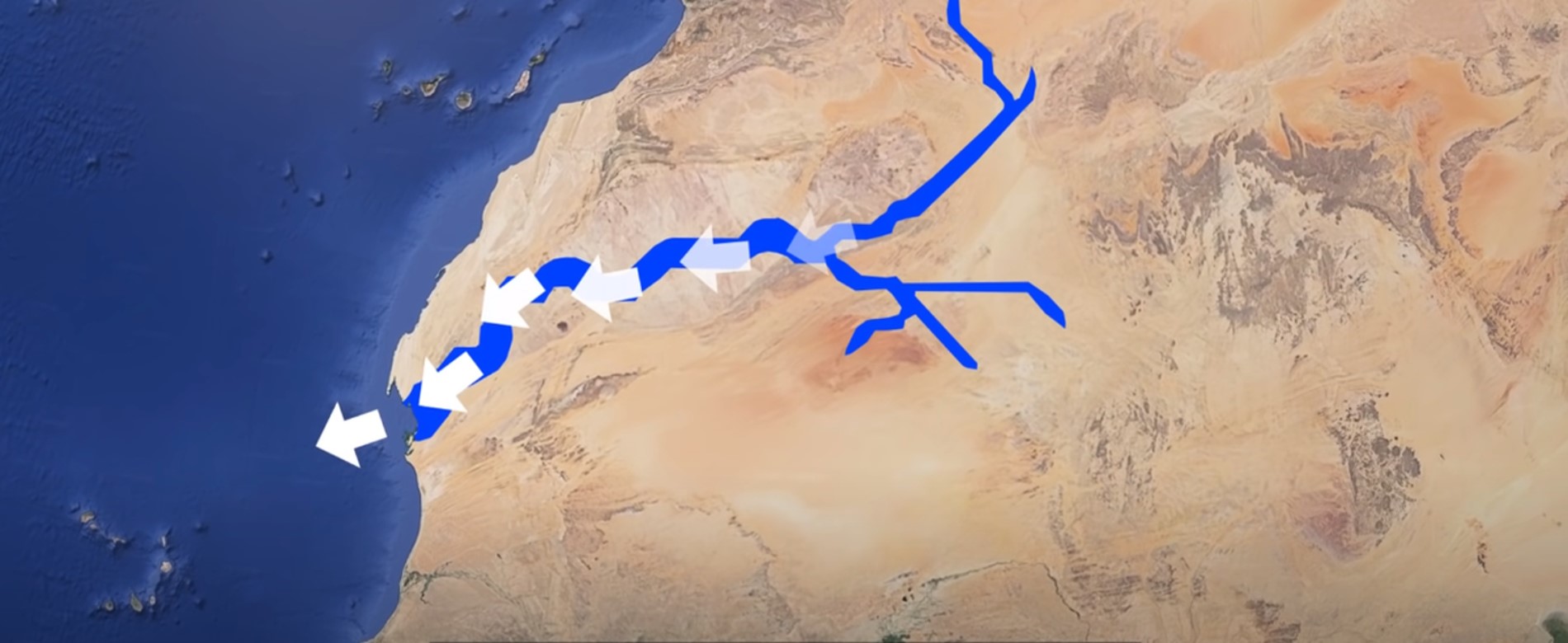 Около 100 миллионов лет назад, во время мелового периода, значительная часть современной Сахары была покрыта водой. Это был древний океан, известный как океан Тетис. Он простирался между древними континентами Гондваной и Лавразией и занимал обширные территории, включая Северную Африку, Ближний Восток и часть Европы.
