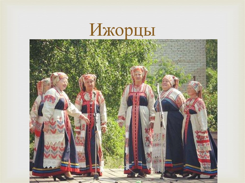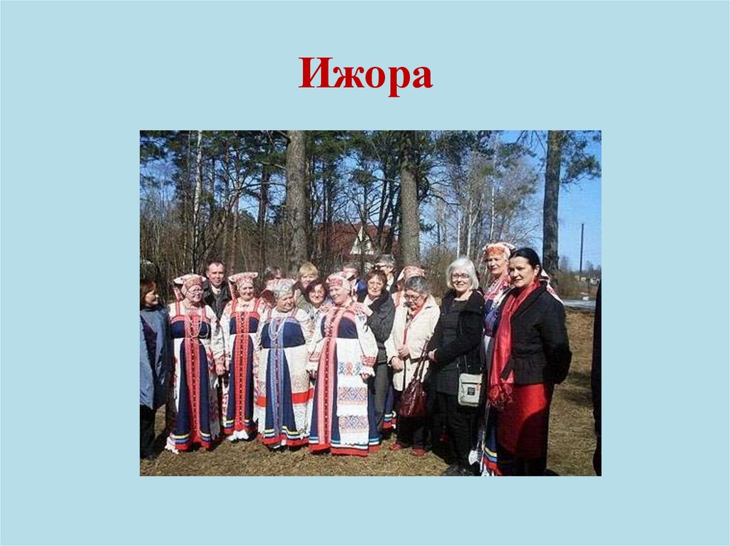 Ижорцы - коренные жители так называемой Ингерманландии, области западнее Питера. Относятся к балтийской ветви финно-угорских народов. Сами себя ижорцы называют ижора или инкерикко. Свой язык - ižorin kēli (ижорский).