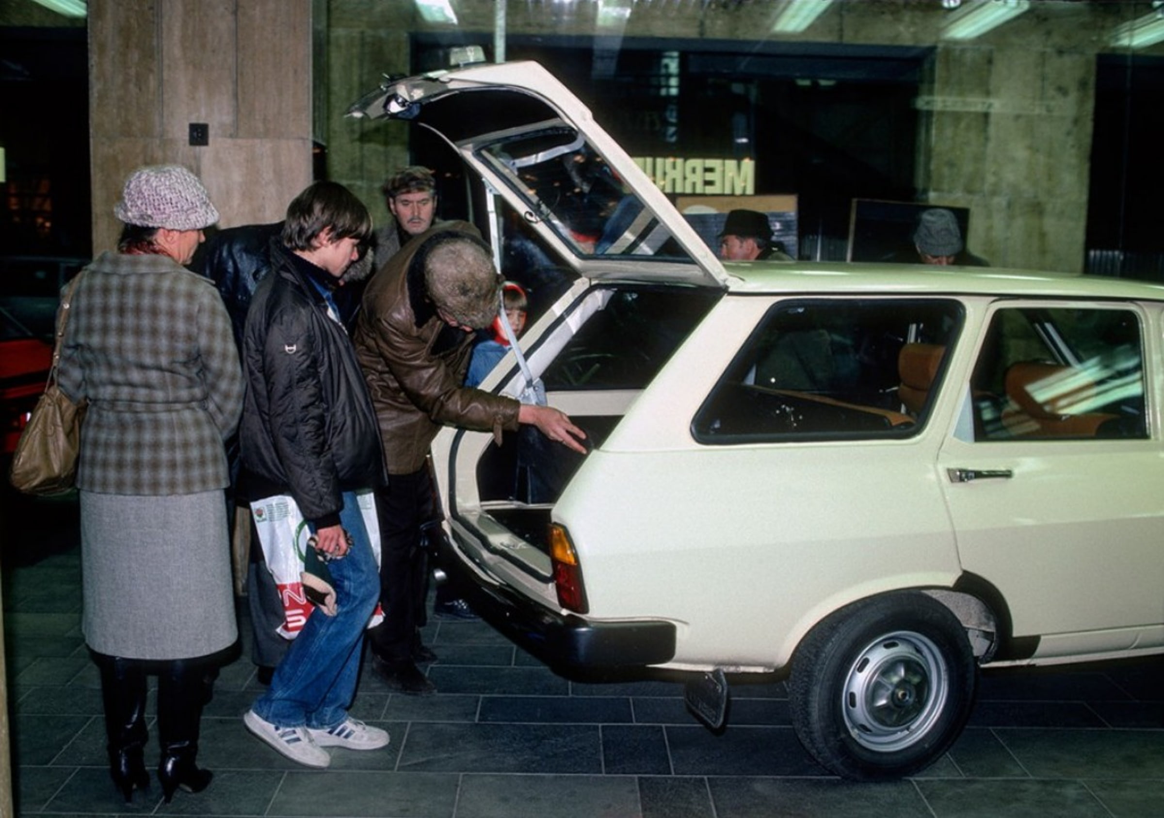 Румынский автомобиль «Дачия» (Dacia) в автосалоне Меркур (Merkur). Венгрия, Будапешт. 1985 год