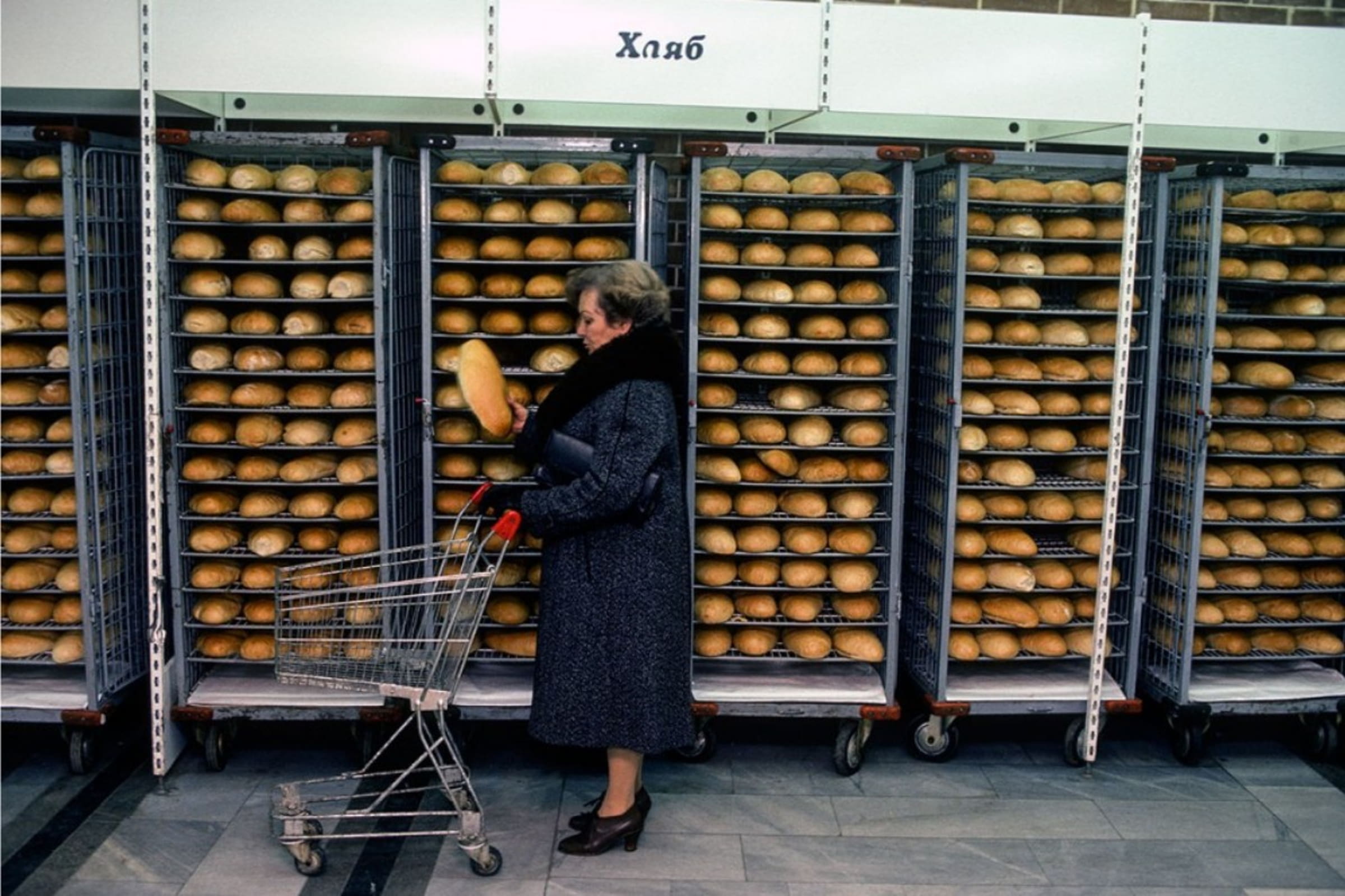 Хлебный отдел в супермаркете. Болгария, София. 1985 год