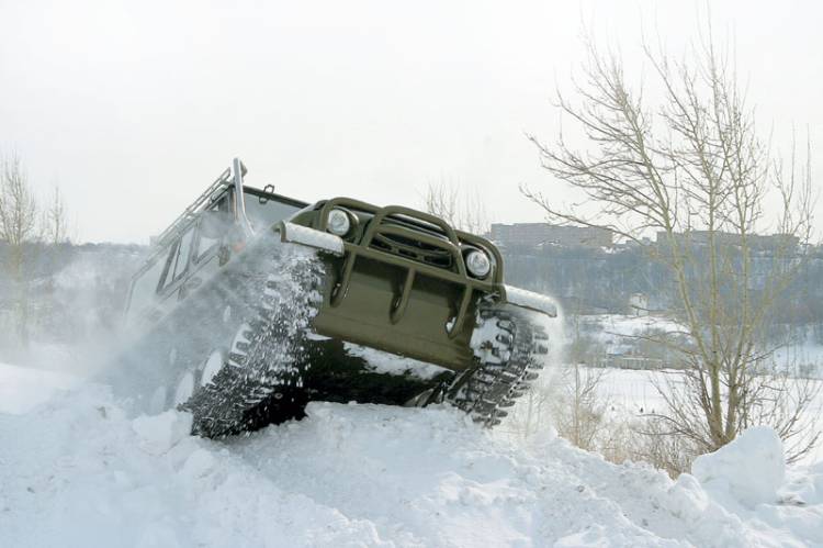 Уазик на гусеницах? Ух ты ж! На самом деле, Ухтыш — это река в Нижегородской области. А снегоболотоход с таким же названием построили в самом Нижнем Новгороде, на Заводе вездеходных машин.