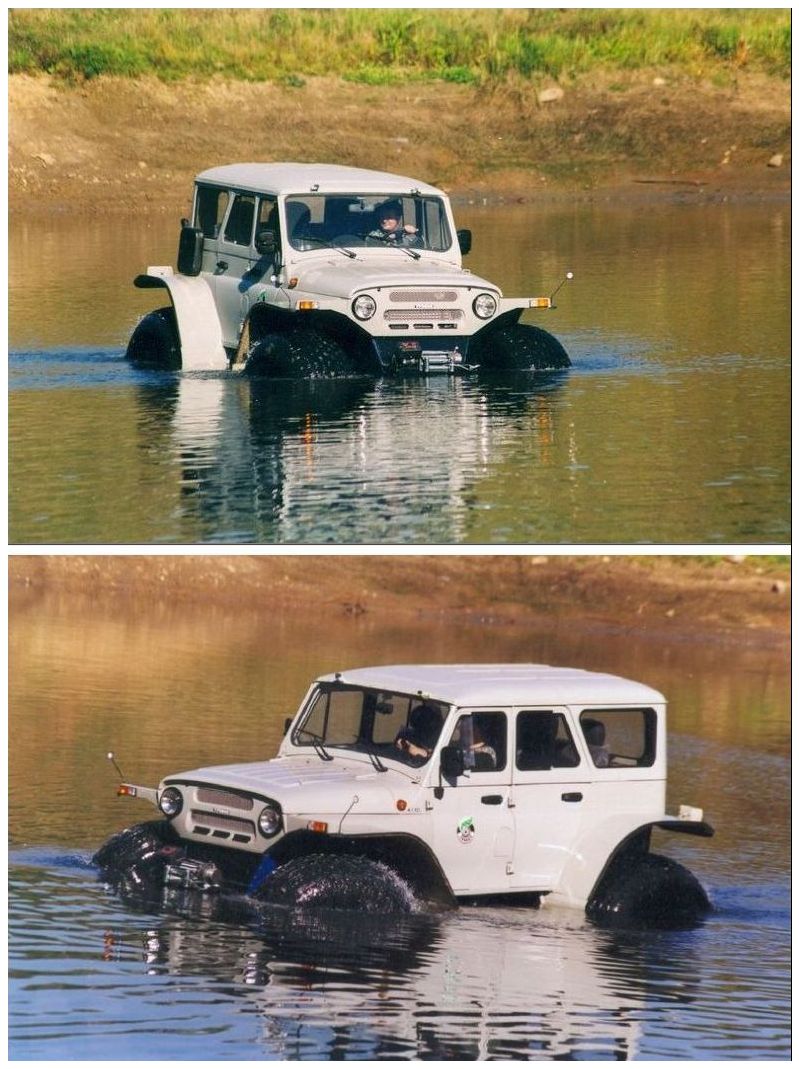 Плавающий Уазик на шести колесах