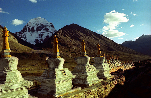 Кайлас — гора высотой порядка 6700 метров, от которой берут начало четыре главные реки Тибета, Индии и Непала (Инд, Сатледж, Брахмапутра и Карнали) — до сих пор все ещё считается непокоренной.